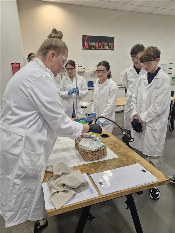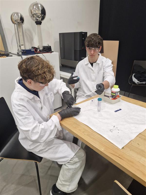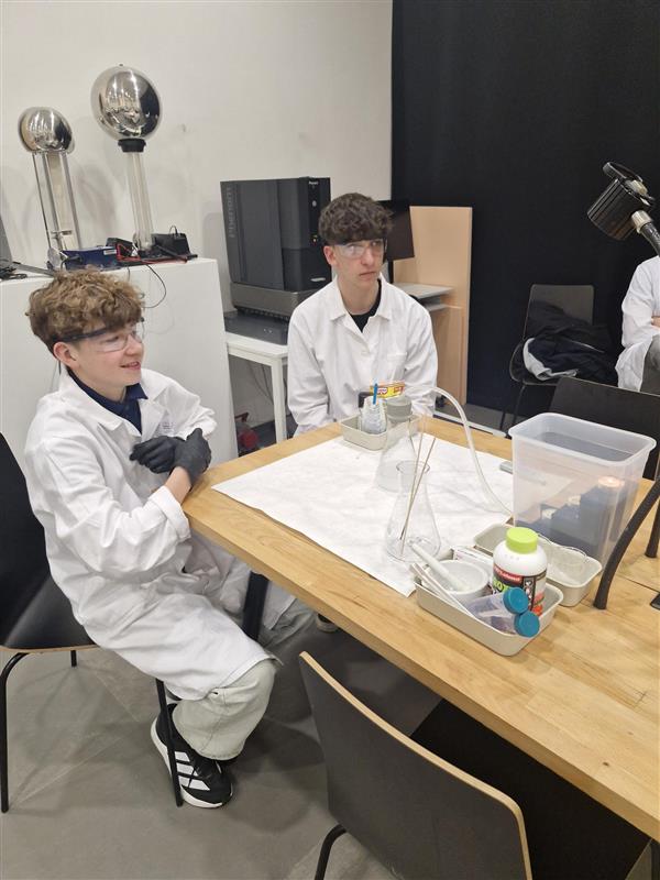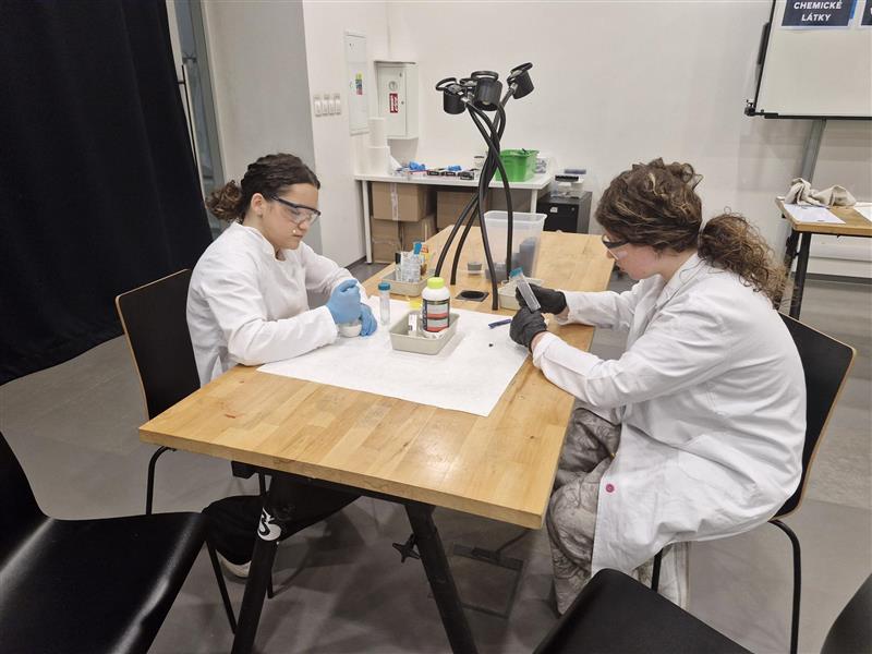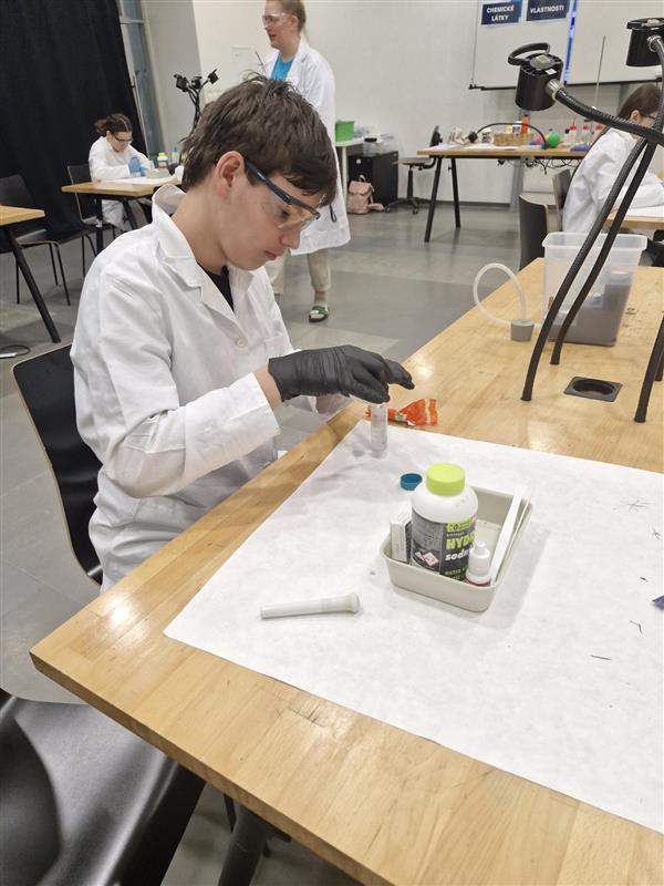 Kromě prohlídky interaktivní expozice, kde si vyzkoušeli řadu fyzikálních a přírodovědných atrakcí, absolvovali také program „(Ne)bezpečná chemie“. Pod vedením lektorky Katky prováděli zajímavé pokusy – například rozklad peroxidu vodíku kvasnicemi s důkazem kyslíku, barevné reakce různých cukrů, zkoumali savé vlastností výplně dětské pleny nebo hasili svíčky vlastnoručně vyrobeným oxidem uhličitým.