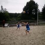 Chlapců bylo čtrnáct dvojic a byli tedy rozděleni do dvou skupin. Z našich se nejlépe vedlo Arturovi s Romanem, kteří postupovali ze skupiny na druhém místě. V semifinále však podlehli dvojici ze ZŠ Purkyňova. V boji o bronz sebrali poslední síly a svým výkonem zvítězili nad domácími hráči. Celý turnaj byl velice náročný, předcházející den hustě pršelo, písek byl studený, nasycený vodou a velmi těžký. O to více obdivu naši hráči získali. Nezapomeňme také, že porazili mnoho soupeřů o dva roky starších než jsou sami. Blahopřejeme a přejeme jim mnoho úspěchů v krajském kole.