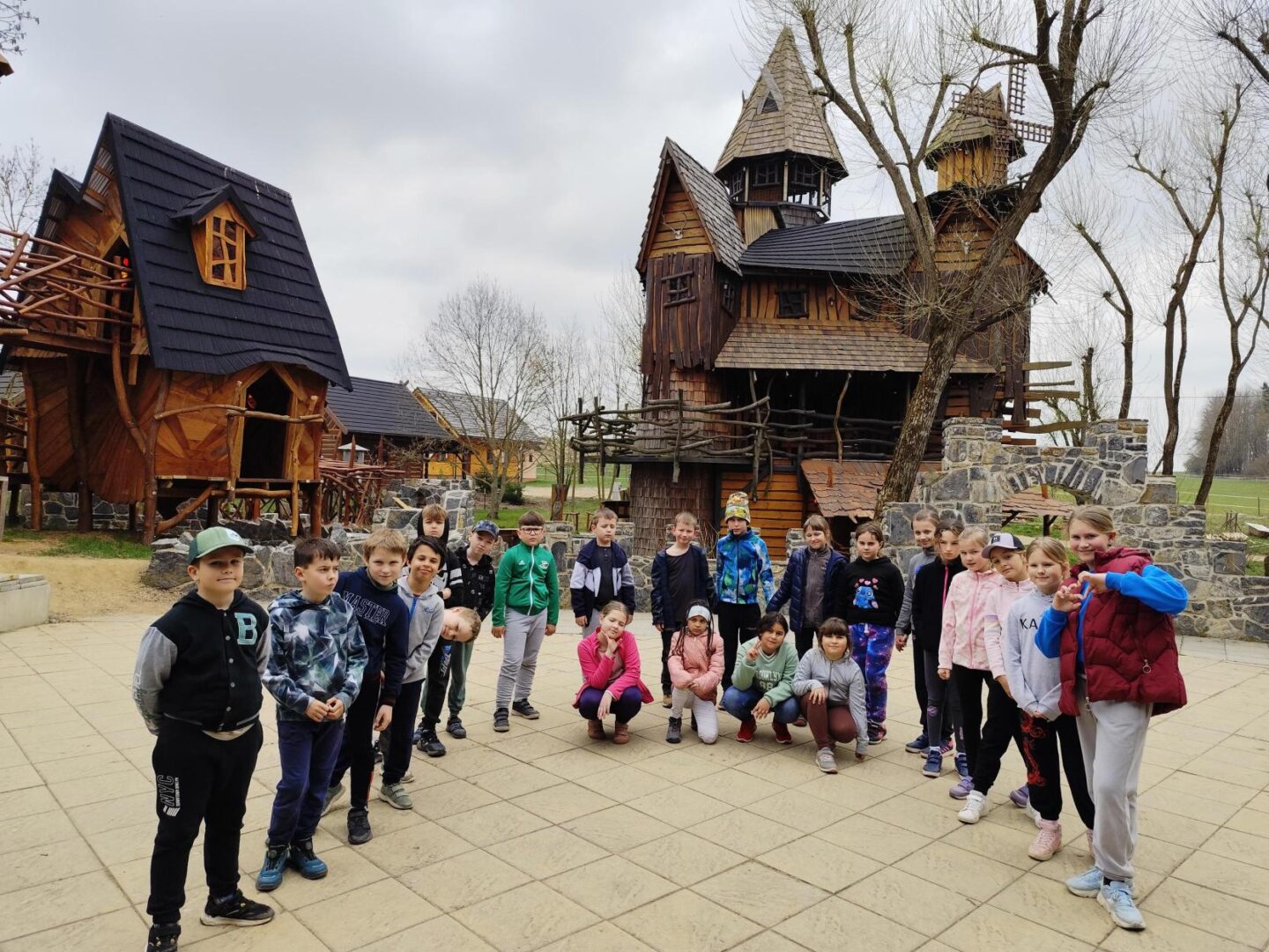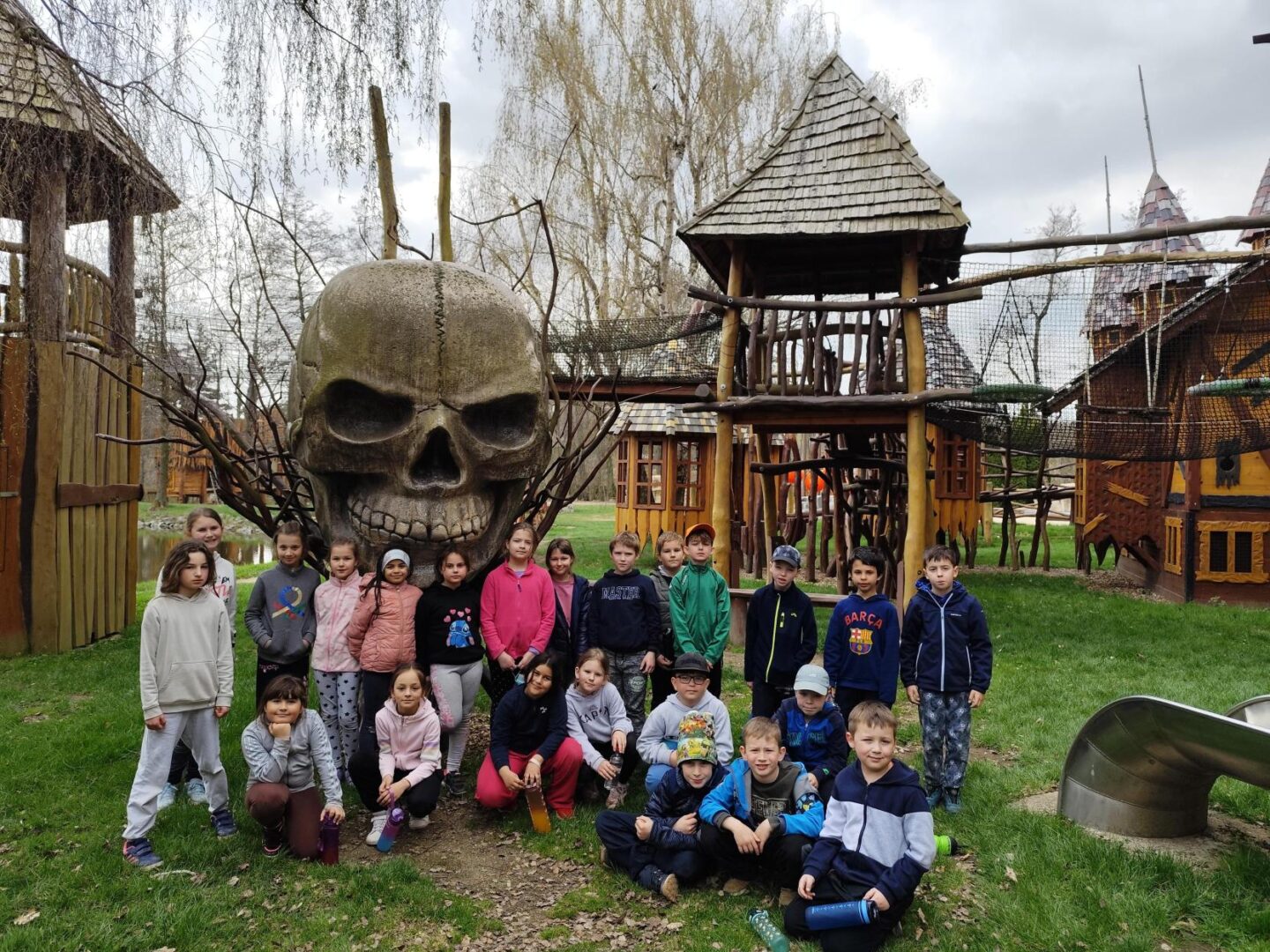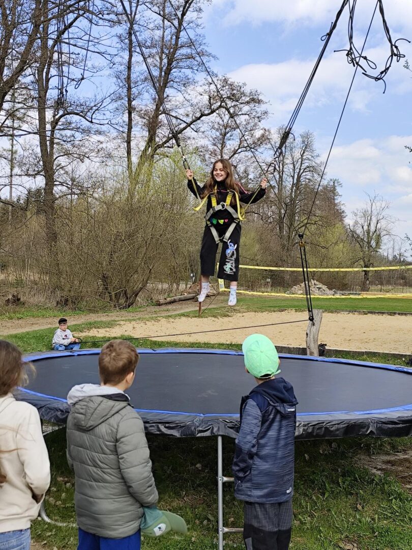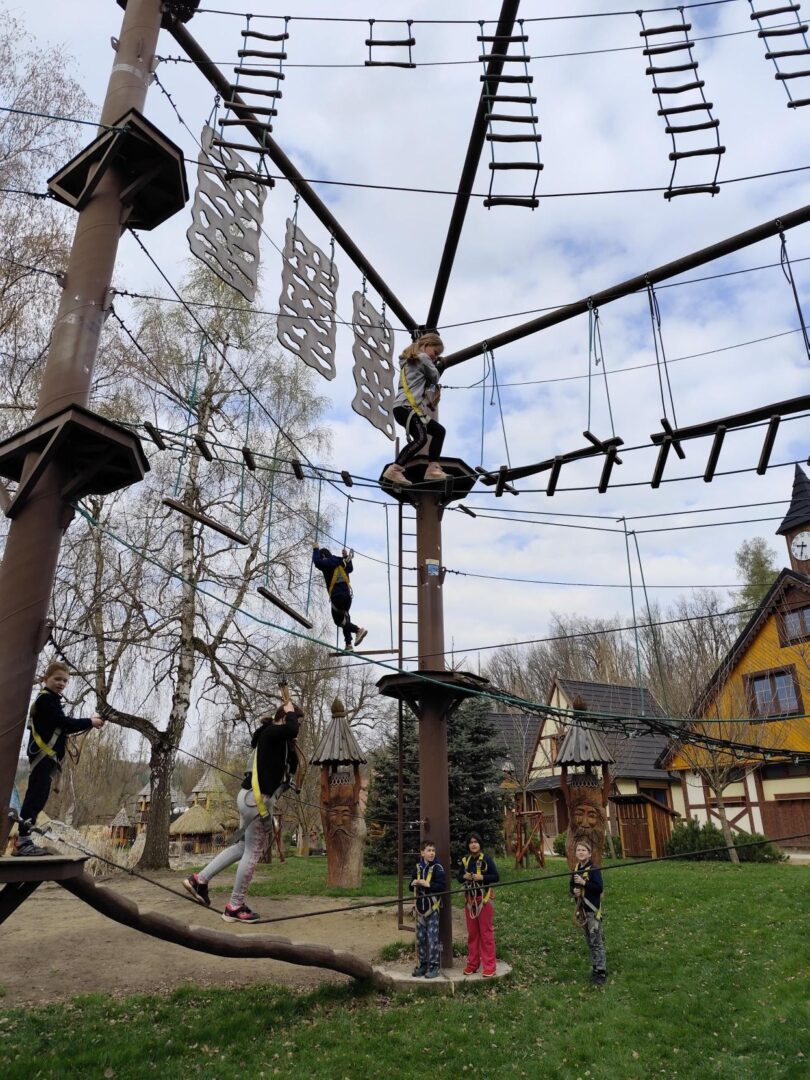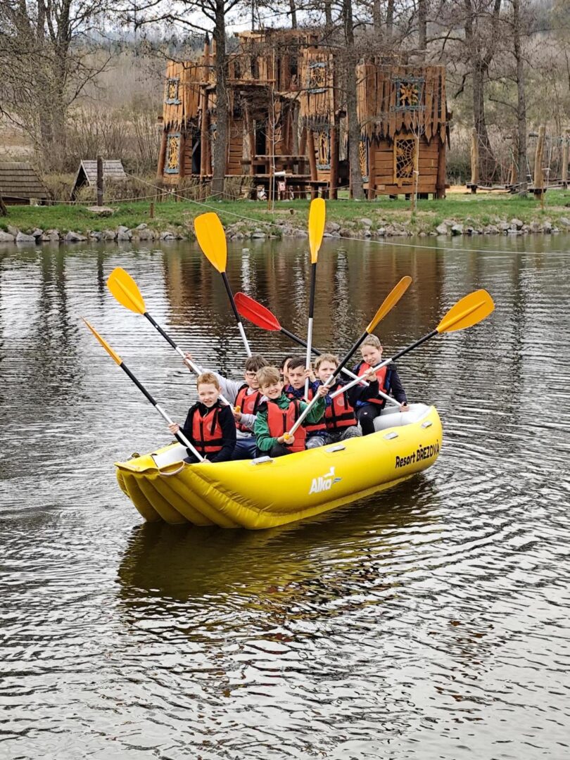Ve středu 14.4. vyrazila naše třída na třídenní výlet na Třebíčsko do resortu Březová. Tři dny byly naplněné spoustou aktivit. Zaskákali jsme si na trampolínách, lezli po horolezecké stěně a v lanovém centru, zakusili pirátskou vesnici, ztracené město, kde jsme plnili zajímavé úkoly. Navštívili jsme strašidelný Karlštejn, splnili únikovku v rytířském hradu, pluli na raftech, stříleli z luku, hráli paintball, mrštnost jsme trénovali také na různých dalších atrakcích, koukali jsme na kino, tancovali na diskotéce a obdivovali ohnivou show. Jedním slovem – PARÁDA!!!