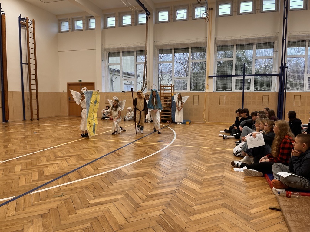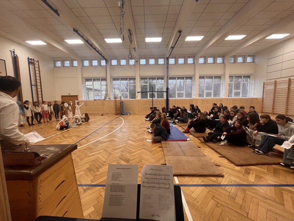 Nechyběly ani hry a společné chvíle plné smíchu. Velkým zážitkem pro nás byl také živý betlém v podání 4.B. Jejich vystoupení jsme rádi podpořili zpěvem a hrou na klavír.