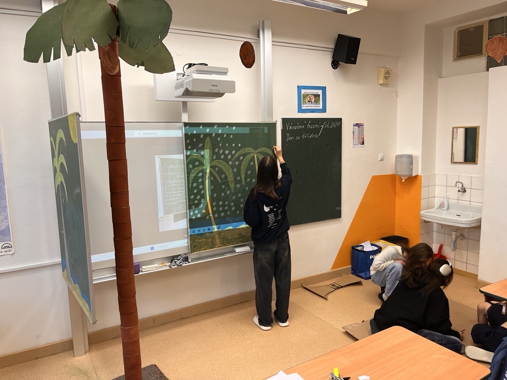 Ve třídě jsme se pustili do tvoření – a letos jsme na to šli i kvůli celoškolní soutěži trochu netradičně. Naším tématem byly Vánoce na Havaji. Třída se tak proměnila v tropický ráj plný barev, palem a originálních ozdob.
