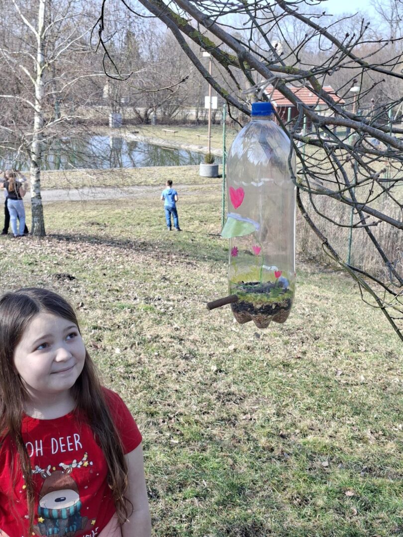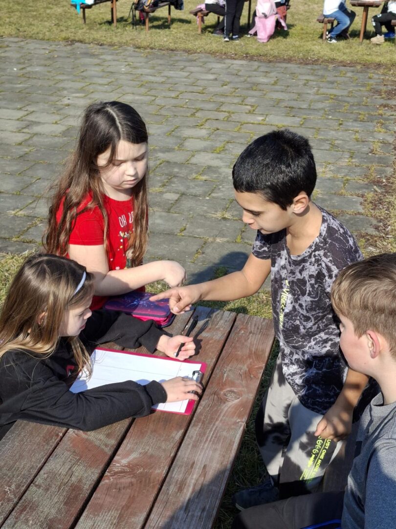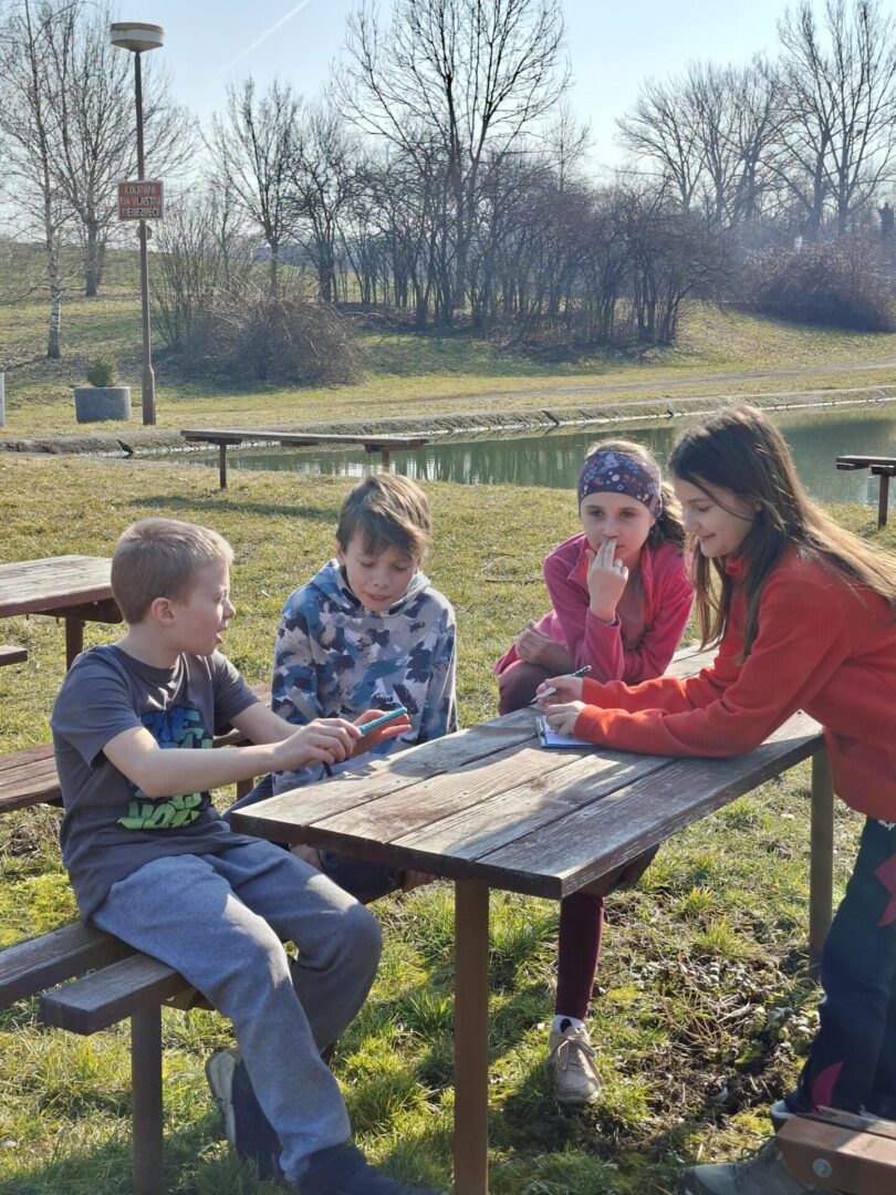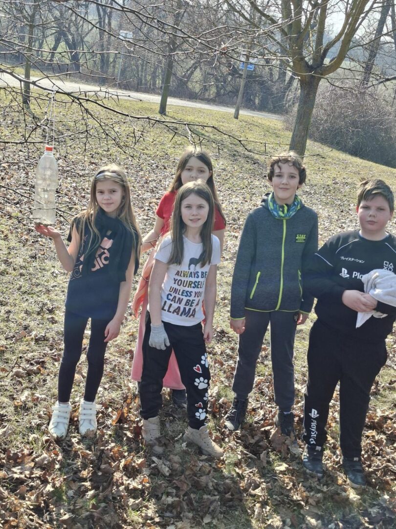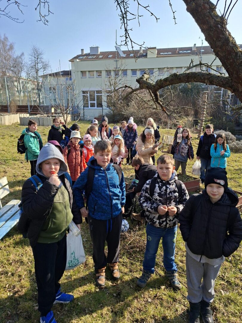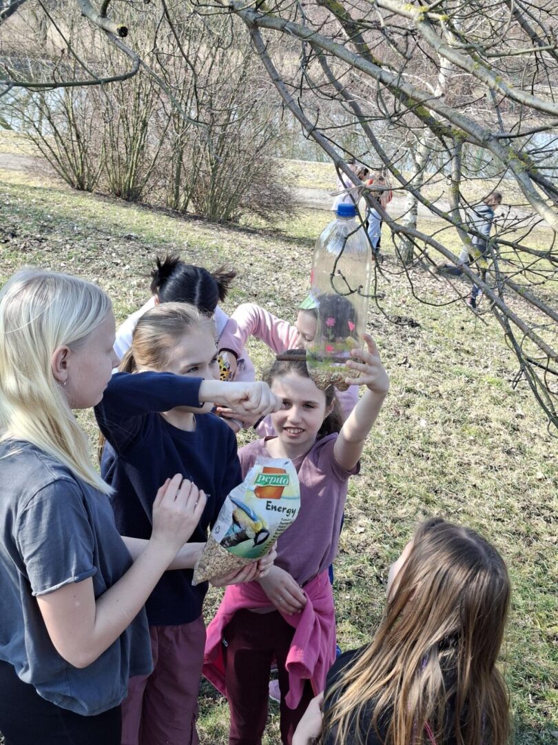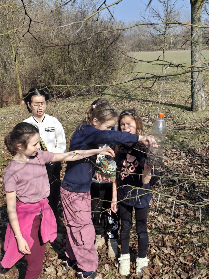 Učení venku v přírodě o důležitosti přikrmování živočichů v zimním období.